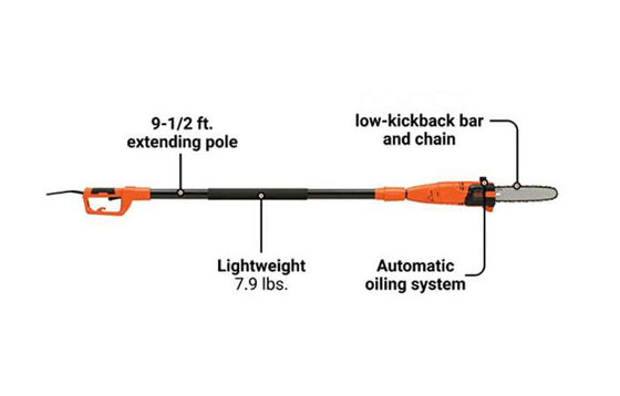 6.5 Amp 10 inch Electric Pole Saw Extending 9.5 Feet With Lightweight For Branches